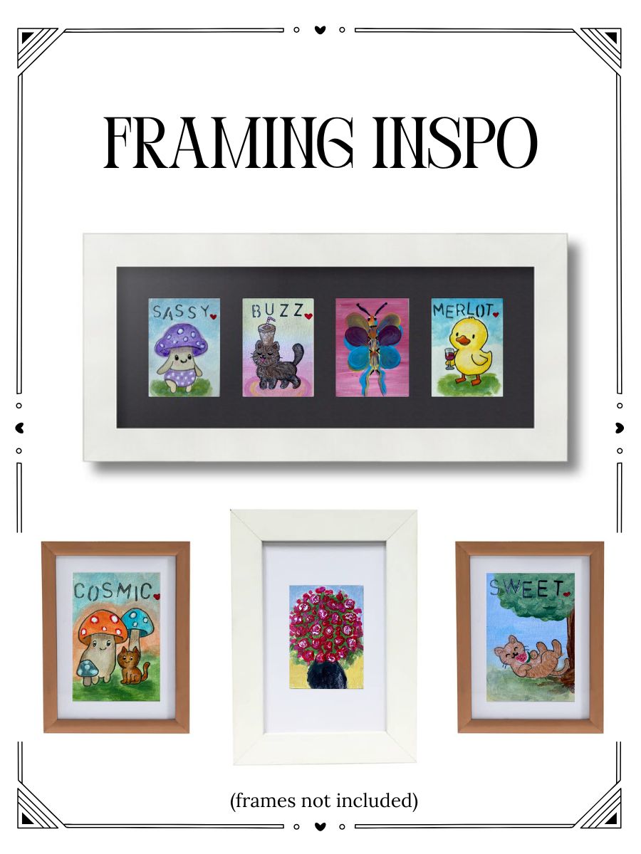You’ll receive one surprise shroom character in a unique scene or with a whimsical object, chosen by the artist’s imagination.